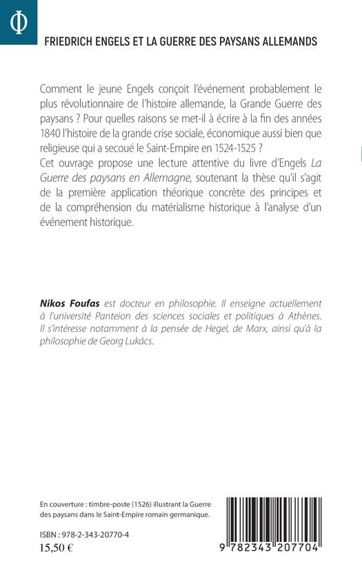 Comment le jeune Engels conçoit l'événement probablement le plus révolutionnaire de l'histoire allemande, la Grande Guerre des paysans ? Pour quelles raisons se met-il à écrire à la fin des années 1840 l'histoire de la grande crise sociale, économique aussi bien que religieuse qui a secoué le Saint-Empire en 1524-1525 ? Cet ouvrage propose une lecture attentive du livre d'Engels La Guerre des paysans en Allemagne, soutenant la thèse qu'il s'agit de la première application théorique concrète des principes et de la compréhension du matérialisme historique à l'analyse d'un événement historique.