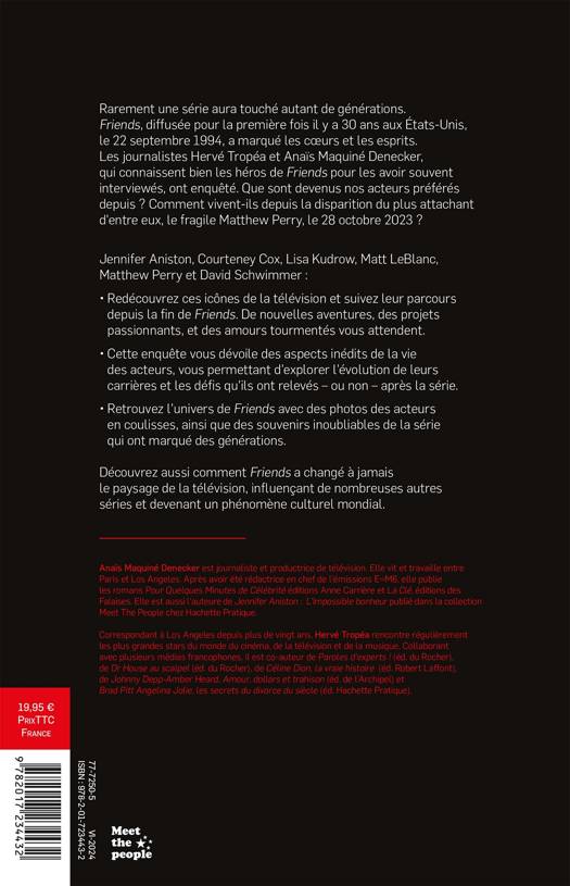 Les journalistes Hervé Tropéa et Anaïs Maquiné Denecker, qui connaissent bien les héros de Friends pour les avoir souvent interviewés, ont enquêté. Que sont devenus nos acteurs préférés depuis ? Comment vivent-ils depuis la disparition du plus attachant d’entre eux, le fragile Matthew Perry, le 28 octobre 2023 ?
