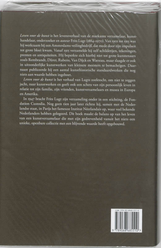 Leven voor de kunst is het levensverhaal van de markante verzamelaar, kunsthandelaar, onderzoeker en auteur Frits Lugt. Van 1901 tot 1915 was hij werkzaam bij een Amsterdams veilingbedrijf, dat mede door zijn impulsen tot grote bloei kwam. Vanaf 1915 verzamelde hij zelf schilderijen, tekeningen, prenten en antiquiteiten. Hij beperkte zich hierbij niet tot grote kunstenaars zoals Rembrandt, Dürer, Rubens, Van Dijck en Watteau, maar slaagde er ook in uitzonderlijke kunstwerken van kleinere meesters te bemachtigen. Daarnaast publiceerde hij een aantal kunsthistorische standaardwerken die nog niets aan waarde hebben ingeboet. Leven voor de kunst is het verhaal van Lugts zoektocht, om niet te zeggen jacht, naar kunstwerken en geeft ook een schets van zijn persoonlijk leven in relatie tot zijn familie, zijn vrienden, kunstverzamelaars en musea in Europa en Amerika. In 1947 bracht Frits Lugt zijn verzameling onder in een stichting, de Fondation Custodia. Nog geen tien jaar later richtte hij, samen met de Nederlandse staat, in Parijs het fameuze Institut Néerlandais op, waar veel bekende Nederlanders hebben gelogeerd. Dit boek maakt de balans op van het leven van een kunstverzamelaar die met zijn gedrevenheid vanuit het niets een unieke, openbare collectie met een blijvende waarde heeft opgebouwd.
