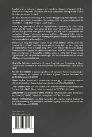 Therefore, in 2019, the Belgian Science Policy Office (BELSPO) commissioned and financed CRYPTODRUG shedding a first, yet necessary, light on illicit drug trade on cryptomarkets from a Belgian perspective. From the alley to the web. Belgian involvement on drug cryptomarkets discusses these CRYPTODRUG results. The book does not only focus on the profile of Belgian vendors selling illicit drugs on drug cryptomarkets, but also provides a first insight into the experiences and motivations of Belgian cryptomarket buyers.