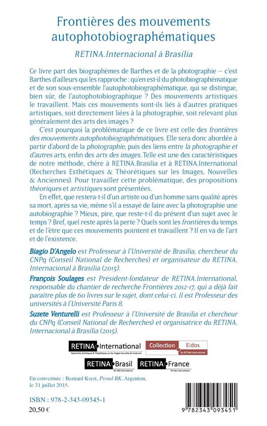 Ce livre part des biographèmes de Barthes et de la photographie : qu'en est-il du photobiographématique et de son sous-ensemble l'autophotobiographématique ? Des mouvements artistiques le travaillent. Mais ces mouvements sont-ils liés à d'autres pratiques artistiques, soit directement liées à la photographie, soit relevant plus généralement des arts des images ? C'est pourquoi la problématique de ce livre est celle des frontières des mouvements autophotobiographématiques. Elle sera donc abordée à partir d'abord de la photographie, puis des liens entre la photographie et d'autres arts, enfin des arts des images.