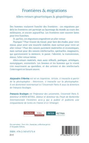 Des hommes voulurent franchir des frontières : ces migrations par-delà les frontières ont participé et participent au façonnage du monde. Les frontières sont souvent faites pour être franchies - et parfois ces migrations engendrent un aller et retour. Allers-retours matériels, mais aussi réflexifs, poétiques, artistiques, nostalgiques, existentiels. Ceux qui les vivent s'en nourrissent au quotidien et des artistes et des intellectuels les interrogent en faisant oeuvre.