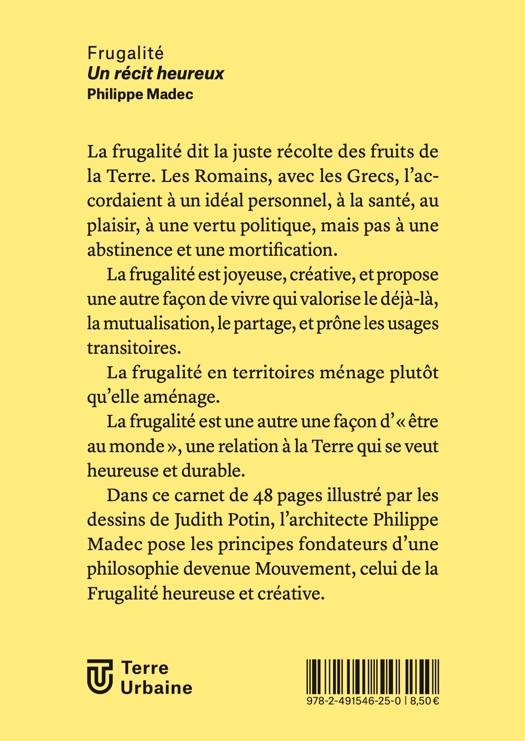 A partir du récit de la genèse du Mouvement de la Frugalité heureuse et créative, l'architecte du biosourcé, Philippe Madec présente les grands principes d'une écologie de la construction, frugale et joyeuse. Il appelle à mettre fin à des techniques urbaines et architecturales polluantes et sans avenir pour la Planète.