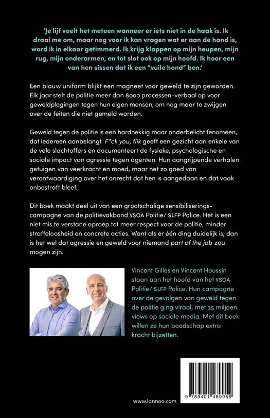 'Ik ben in totaal 1293 dagen werkonbekwaam geweest', getuigt een politieagent. Een interventie tijdens een carnavalbal loopt mis, een feestvierder takelt hem zwaar toe. Hij kampt nog dagelijks met pijn. Zijn medische kosten lopen op, en toegang krijgen tot psychologische begeleiding is moeilijk. Als klap op de vuurpijl wordt het dossier geseponeerd zonder gevolg; de agressor blijft op vrije voeten... Een politie-uniform blijkt een magneet voor geweld te zijn geworden. Agenten worden beschimpt, bedreigd, fysiek belaagd en onder vuur genomen. Elke dag stelt de politie 28 processen-verbaal op voor geweldplegingen tegen hun eigen mensen. Dit boek geeft een gezicht aan de slachtoffers, en documenteert de psychologische en sociale impact van agressie tegen agenten. Een oproep tot meer respect, minder straffeloosheid en concrete acties.