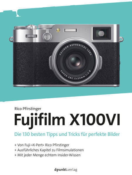 Dieses Buch bietet einen schnellen Einstieg in die Fotografie mit der Kult-Kompaktkamera von Fujifilm. Fuji-»X-Pert« Rico Pfirstinger hat darin 130 nützliche Tipps und Tricks sowie viele exklusive Informationen zusammengetragen. Damit hilft er Ihnen, die X100VI so zu verstehen und einzusetzen, dass Sie auf kürzestem Weg zu optimalen Bildergebnissen kommen. Er verzichtet dabei auf eine ausschweifende Beschreibung der Grundfunktionen und legt den Schwerpunkt auf Informationen, die nicht im Benutzerhandbuch stehen. Auch die eingebauten Filmsimulationen und JPEG-Einstellungen kommen nicht zu kurz, sodass Sie auch mit JPEG-Bildern direkt aus der Kamera fantastische Ergebnisse erzielen. Alles über Ihre Fujifilm X100VI