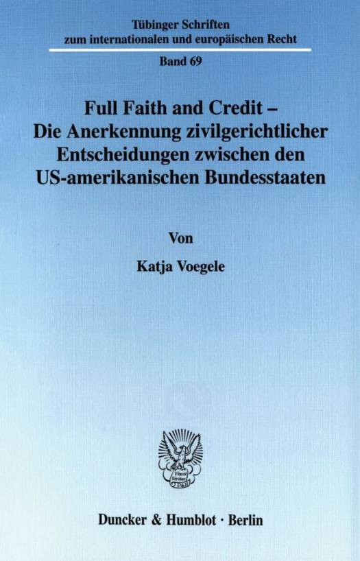 Katja Voegele untersucht das US-amerikanische Anerkennungsrecht bezogen auf schwesterstaatliche Entscheidungen der Zivilgerichte. Zugleich analysiert sie die wesentlichen Unterschiede und Gemeinsamkeiten zur Anerkennung von Entscheidungen innerhalb der Europäischen Union, und zwar insbesondere vor dem Hintergrund der Frage, inwieweit die amerikanische Ausgestaltung der Anerkennung Anregungen für den europäischen Rechtsraum bieten kann und wie das, was in Europa vollzogen wurde und geplant ist, vor dem Hintergrund der amerikanischen Erfahrung zu beurteilen ist. Sie kommt zu dem Ergebnis, daß das europäische Anerkennungssystem das modernere und wohl auch effizientere ist.