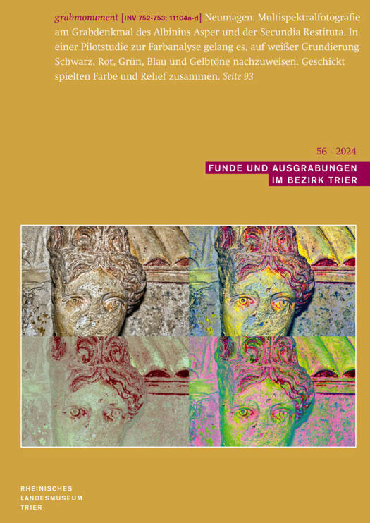 Aus dem InhaltKorana Deppmeyer: Aeskulap und die 'Antoninische Pest' - Sascha Schmitz / Florian Tanz / Winona Welk: Das Projekt Archaologisches Stadtkataster Trier (PAS-TR) - Anja Klockner / Ute Kelp / Sascha Schmitz: Die Farbgebung des Grabmonuments des Albinius Asper und der Secundia Restituta aus Neumagen - Ferdinand Heimerl / Julian Geiss / Jasmin Beuren: "Rituale, Abfalle und Sammler: Neue Ansatze zu romischen Flussfunden" - Ein deutsch-britisches kooperationsprojekt - Sophie von Pronay: Weder Zughaken noch Knochenheber: Zur Identifizierung von Henkelenden von Hemmoorer Eimern aus Trier - Sabine Faust / Peter Henrich: Aus Nordafrika in die Eifel: Der bronzene Omphalosschalen-Stander von Duppach-Weiermuhle, Landkreis Vulkaneifel