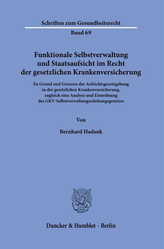 Funktionale Selbstverwaltung und Staatsaufsicht stehen in einem Spannungsverhaltnis zueinander. Konstitutiv fur die Selbstverwaltung ist die Betroffenenpartizipation sowie die dezentralisierte Organisationsstruktur. Staatsaufsicht bezweckt dagegen die Kontrolle der Beaufsichtigten, wobei im modernen Staat praventive Kontrollinstrumente zunehmend an Bedeutung gewinnen. Anderungen im Verhaltnis von funktionaler Selbstverwaltung und staatlicher Aufsicht im Recht der gesetzlichen Krankenversicherung haben sich durch die jungere Gesetzgebung und insbesondere durch das GKV-Selbstverwaltungsstarkungsgesetz ergeben, mit dem die Aufsichtsbefugnisse uber die Spitzenorganisationen der gesetzlichen Krankenversicherung spurbar erweitert worden sind. Dies gibt Anlass zur Untersuchung des Spannungsverhaltnisses und zur Einordnung der jungeren Gesetzgebung. Daruber hinaus bietet die Arbeit Vorschlage, wie eine Starkung der funktionalen Selbstverwaltung auch mit den bestehenden Aufsichtsinstrumenten gelingen kann.
