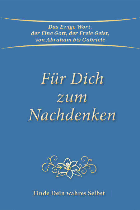 Das Büchlein "Für Dich zum Nachdenken" lädt dazu ein, es immer wieder aufzuschlagen, um genau das Lebenszitat oder genau die Lebensweisheit darin zu entdecken, die jetzt und heute, in unserer aktuellen Stimmungslage oder Lebenssituation für uns hilfreich und von Bedeutung ist. So lehrt uns Gabriele, die Prophetin und Botschafterin Gottes, in diesem Büchlein z.B.: "Was wir selbstlos lieben, das ist der Besitz unserer Seele. Was wir jedoch begehren, das besitzen wir nicht". Oder: Das Böse kann ohne den Lebenskern des Guten nicht bestehen. Daher gibt es nichts, das ausschließlich böse wäre; in allem Bösen ist auch der Kern des Guten. Finde ihn!" Oder: Wenn sich Weisheit und Liebe einen, dann strahlt Schönheit aus dem Menschen; und nur der Mensch ist schön, aus dem Liebe und Weisheit strahlen."
