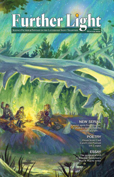 The premiere issue of Further Light, a semiannual magazine featuring science fiction, fantasy, alternate history, magical realism, and light horror short fiction, creative scriptural retellings, poetry, and literary criticism in the Latter-day Saint tradition. The magazine that seeks to explore the restored gospel through the medium of the human imagination. Our goal is to enjoy the fandoms we love, to experience new ones, and to expound on the eternal truths buried within them. We publish both fiction and nonfiction that helps readers connect to gospel principles through speculative fiction.