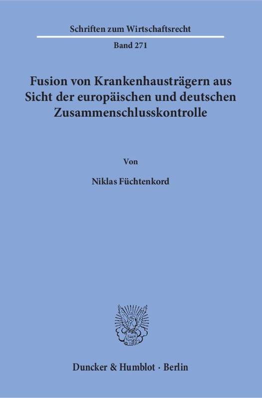 Niklas Füchtenkord untersucht, in welchem Maße die europäische und deutsche Zusammenschlusskontrolle auf Krankenhausfusionen anwendbar ist. Der Autor diskutiert dabei zunächst die Unternehmenseigenschaft von Krankenhäusern. Nach Annahme dieser stellt er dar, dass weder Normen des europarechtlichen Primärrechts noch des deutschen Gesundheitsrechts der Anwendbarkeit des Wettbewerbsrechts entgegenstehen. Darauf aufbauend arbeitet er die Besonderheiten heraus, die sich sodann aus dem Wechselspiel der Zusammenschlusskontrolle und dem Krankenhausbereich ergeben. Der Autor kommt zu dem Schluss, dass trotz der im Krankenhausbereich hohen Regulierungsdichte Wettbewerbsspielräume bestehen, die mit dem Werkzeug des Wettbewerbsrechts zu schützen sind. Die Fusionskontrollverordnung (FKVO) sowie das Gesetz gegen Wettbewerbsbeschränkungen (GWB) bieten mit dem "SIEC-Test", der Abwägungsklausel im deutschen Recht sowie der Ministererlaubnis auch bei einem bundesweit abzugrenzenden Krankenhausmarkt ausreichend Möglichkeiten, auf positive wie negative Auswirkungen auf dem Krankenhausmarkt durch Klinikzusammenschlüsse flexibel zu reagieren.