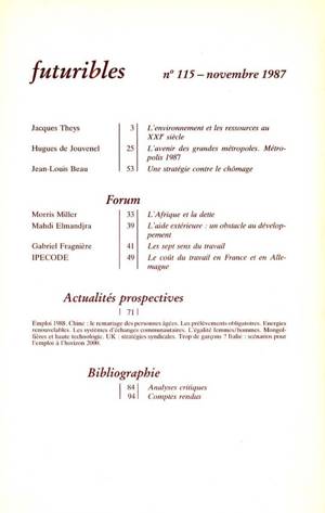 5. Futuribles 115, novembre 1987. L'environnement au XXIe siècle