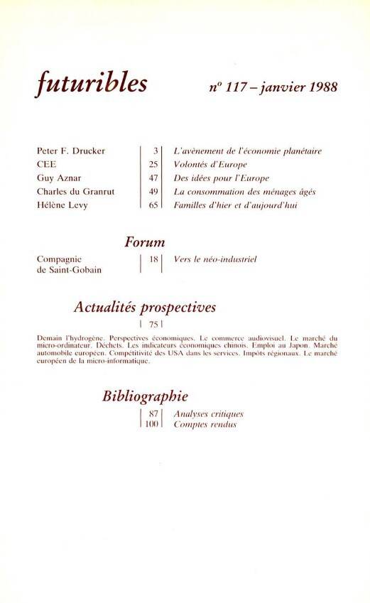 Futuribles 117, janvier 1988. L'avènement de l'économie planétaire