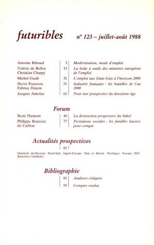 5. Futuribles 123, juillet-août 1988. Les politiques d'emploi