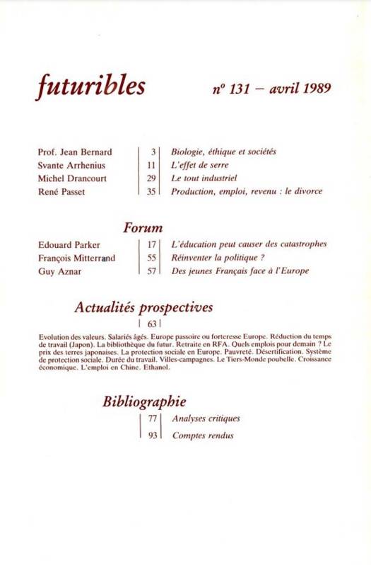5. Futuribles 131, avril 1989. Ethique et sciences de la vie