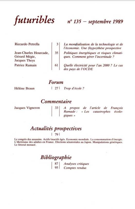 Futuribles 135, septembre 1989. La mondialisation de l'économie