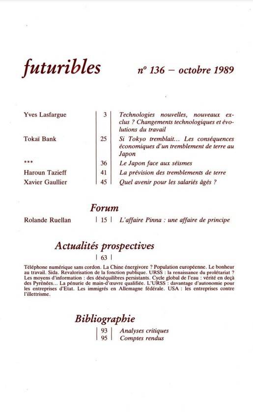 5. Futuribles 136, octobre 1989. Nouvelles technologies, nouveaux exclus