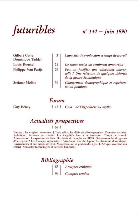5. Futuribles 144, juin 1990. Production et temps de travail