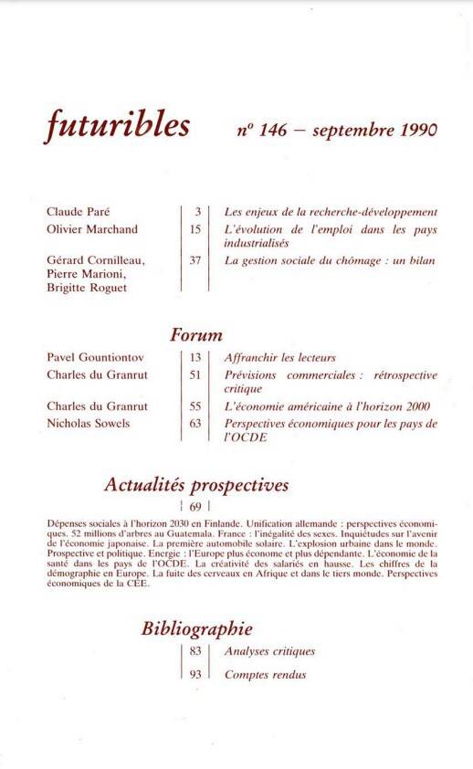5. Futuribles 146, septembre 1990. L'évolution de l'emploi dans les pays industrialisés
