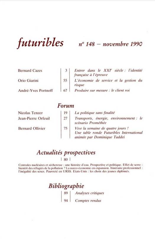 5. Futuribles 148, novembre 1990. La France à l'horizon 2000