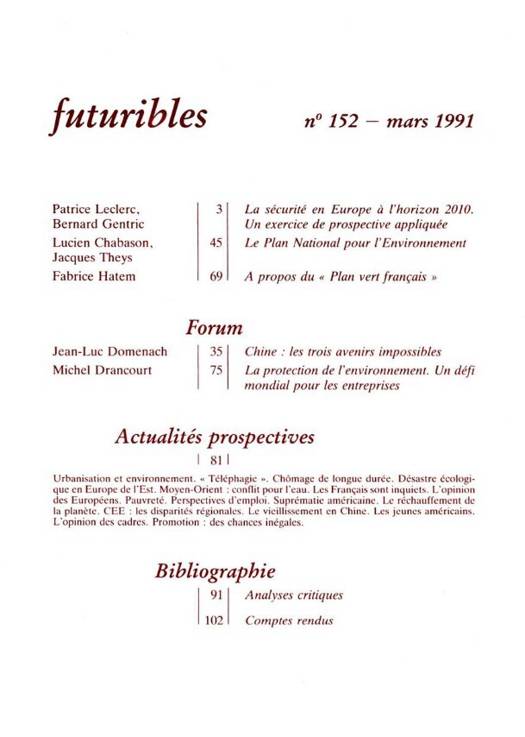 5. Futuribles 152, mars 1991. La sécurité en Europe
