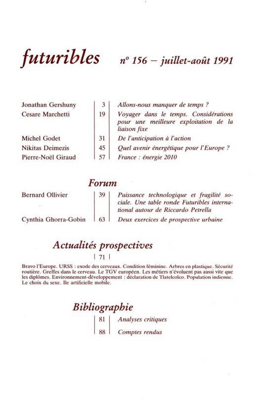 5. Futuribles 156, juillet-août 1991. Temps libre