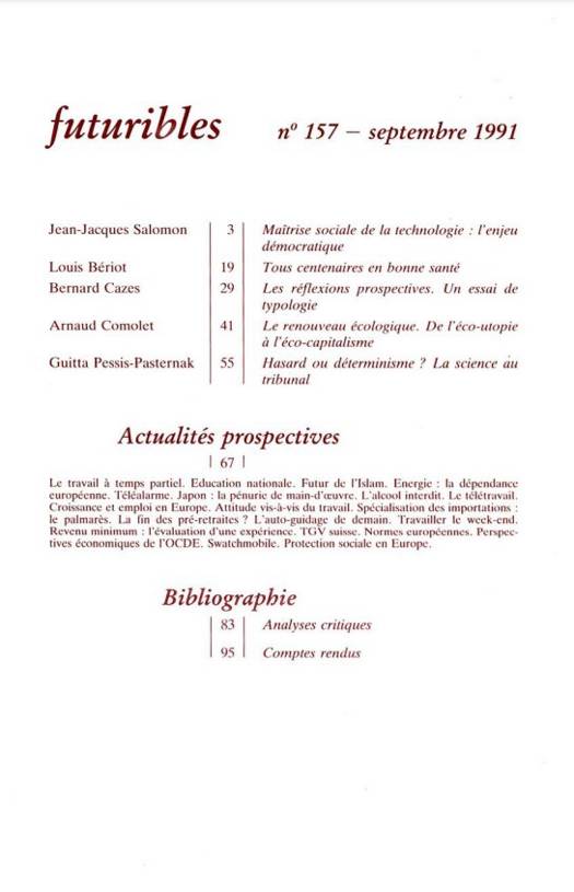 5. Futuribles 157, septembre 1991. Maîtrise sociale de la technologie