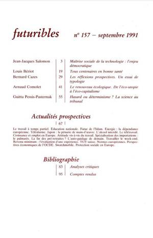 Futuribles 157, septembre 1991. Maîtrise sociale de la technologie