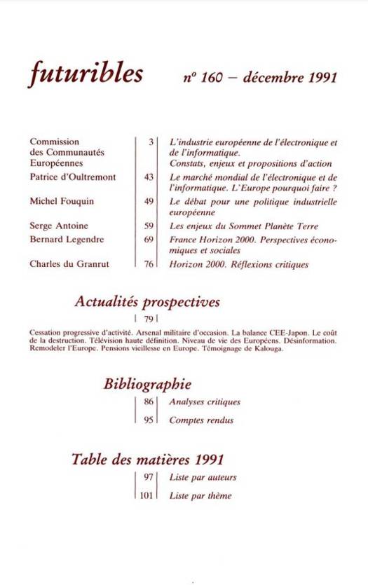 5. Futuribles 160, décembre 1991. L'industrie européenne de l'électronique et de l'informatique
