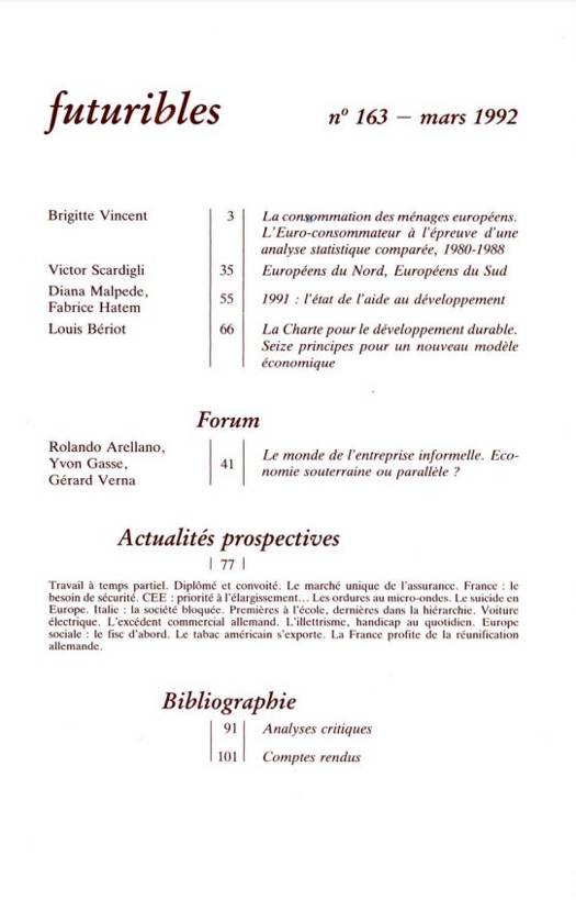 5. Futuribles 163, mars 1992. La consommation des ménages européens