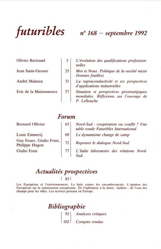 Forum Nord-Sud : coopération ou conflit ? Une table ronde Futuribles International OLLIVIER Bernard