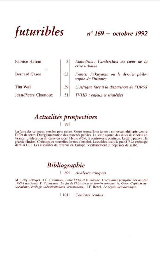 5. Futuribles 169, octobre 1992. La crise urbaine aux USA