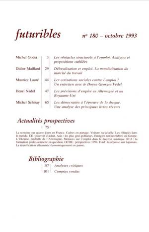 Futuribles 180, octobre 1993. Les obstacles structurels à l'emploi