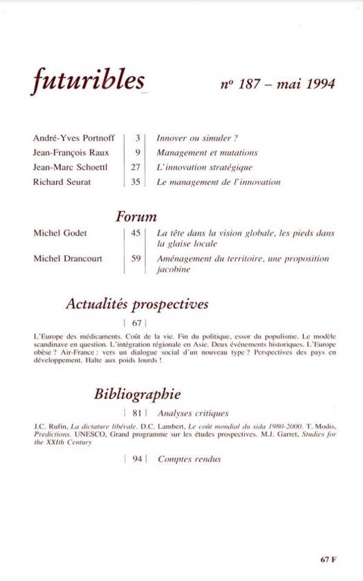 5. Futuribles 187, mai 1994. Les stratégies d'innovation