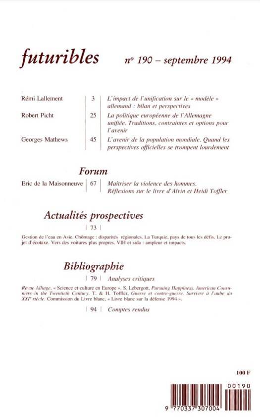 5. Futuribles 190, septembre 1994. Le modèle allemand après l'unification