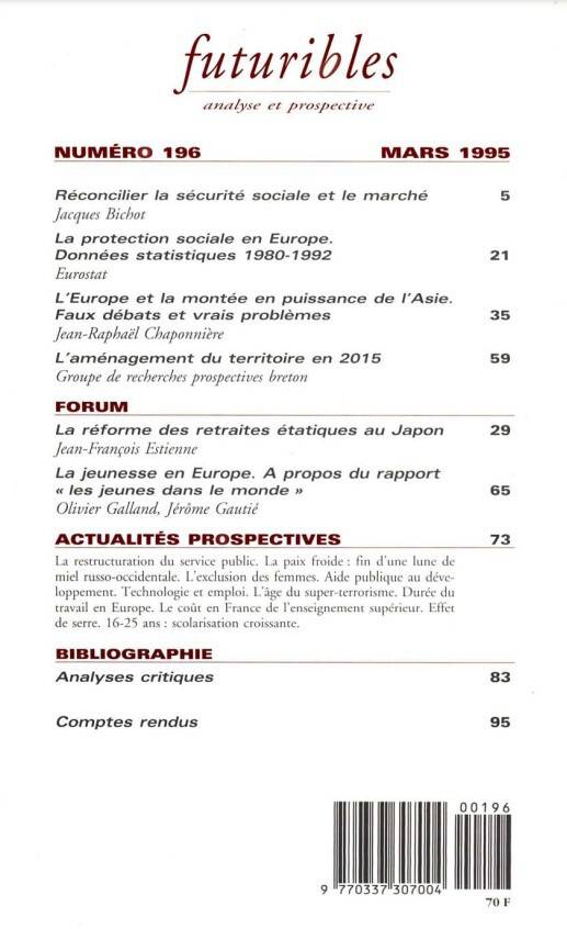 5. Futuribles 196, mars 1995. Réconcilier sécurité sociale et marché