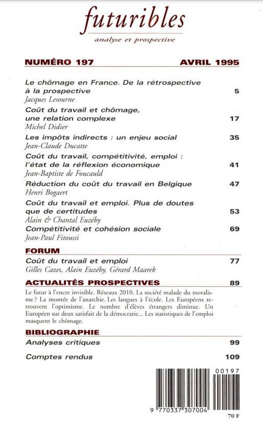 5. Futuribles 197, avril 1995. Coût du travail et emploi