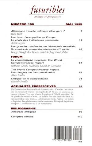 Forum The World Competitiveness Report. Les dangers de l’auto-évaluation MERLIN Albert