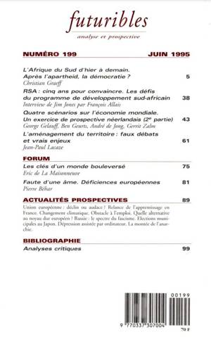 Futuribles 199, juin 1995. L'Afrique du Sud d'hier à demain