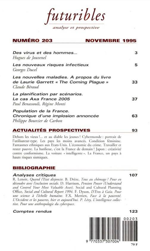 5. Futuribles 203, novembre 1995. Les nouveaux risques infectieux
