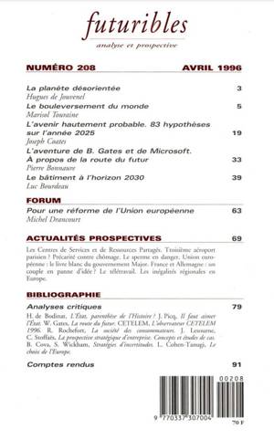 5. Futuribles 208, avril 1996. Le bouleversement du monde