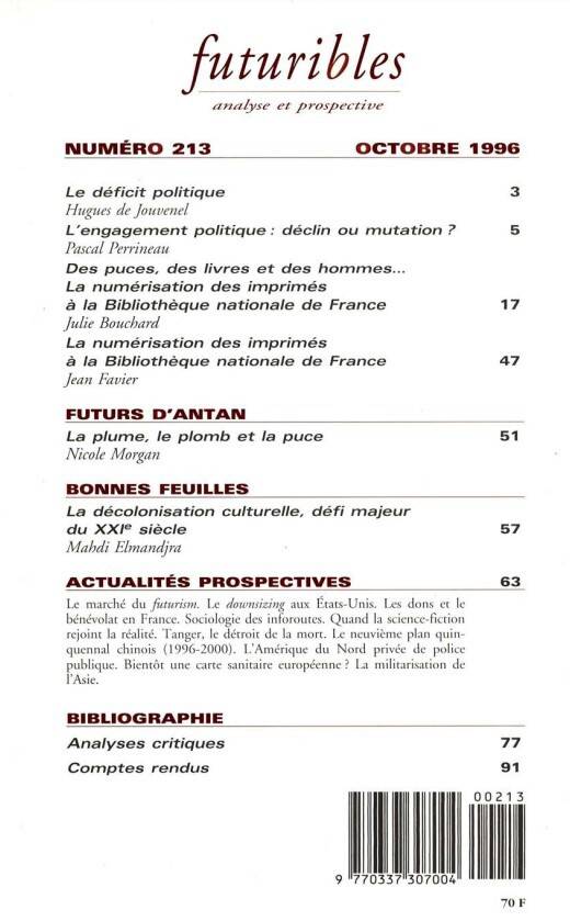 5. Futuribles 213, octobre 1996. L'engagement politique