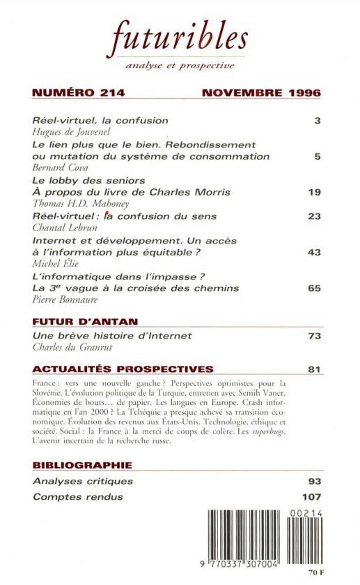 5. Futuribles 214, novembre 1996. Réel / Virtuel