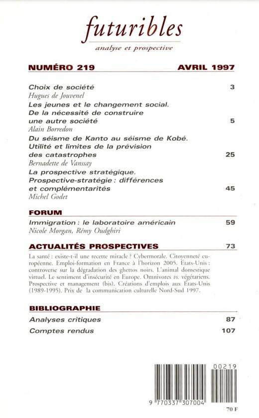 5. Futuribles 219, avril 1997. Les jeunes et le changement social