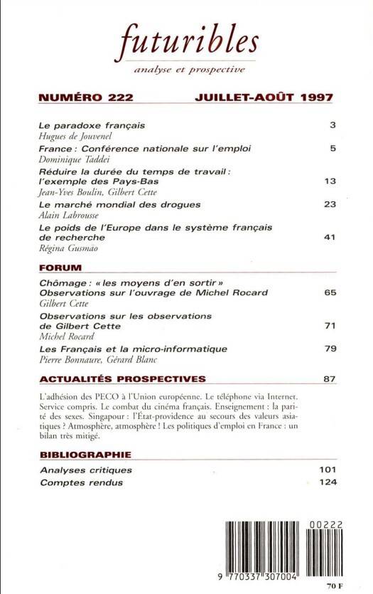 5. Futuribles 222, juillet-août 1997. La réduction du temps de travail aux Pays-Bas