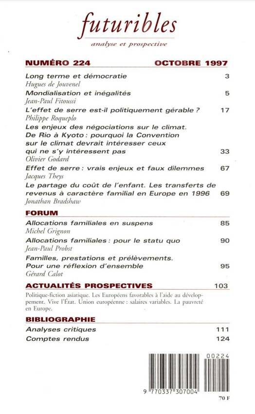 5. Futuribles 224, octobre 1997. Mondialisation et inégalités