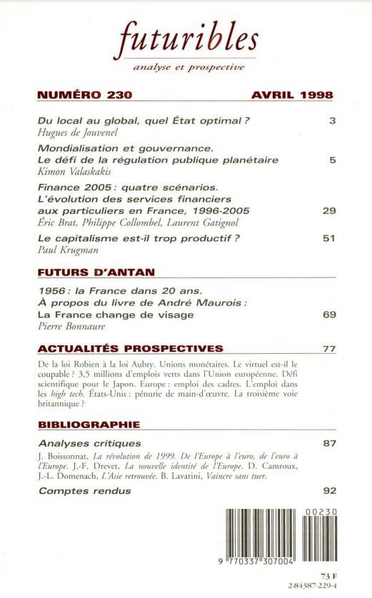 Éditorial Du local au global, quel État optimal ? JOUVENEL Hugues (de)