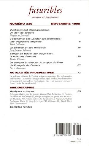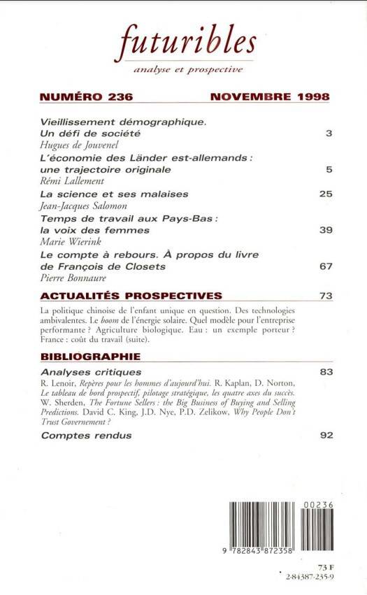 5. Futuribles 236, novembre 1998. L'unification allemande