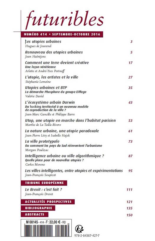 5. Futuribles 414, septembre-octobre 2016. Renouveau des utopies urbaines