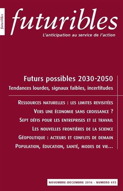 5. Futuribles 415, novembre-décembre 2016. Futurs possibles 2030-2050